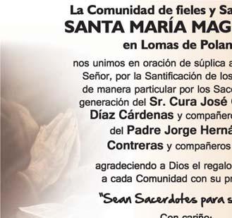 La Sección Diocesana de Evangelización y Catequesis ofrece un Diplomado y Cursos de Verano para los que acompañan la formación de adultos: Catequistas, Evangelizadores, Coordinadores de Grupos Parroquiales, Pre-sacramentales y Movimientos. También el Departamento de Catequesis Especial brinda a Sacerdotes, Religiosas, Catequistas, Agentes de Pastoral y Laicos en general, el Curso de Verano de Catequesis Especial y Lengua de Señas Mexicana “La atención en la Fe de las personas con discapacidad”. Todos se llevarán a cabo del 14 de julio al 9 agosto. Informes e inscripciones, en Román Morales 517, Sector Libertad. Tel. 3618-6666.