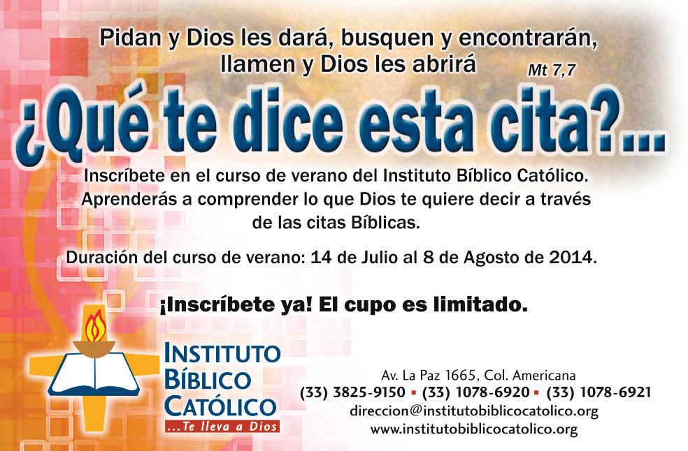 Impreso por: Ediciones Católicas de Guadalajara, S.A. de C.V. con oficinas en Isla Flores N. 3344, Col. San José, Tlaquepaque, Jalisco. Tel. 3002-6470. Tiraje: 37,000 a 40,000