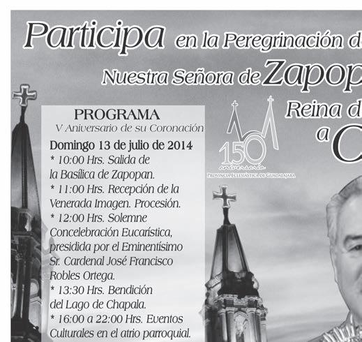 Semanario Arquidiocesano de Guadalajara • Órgano de Formación e Información Católica • Semanario Arquidiocesano de Guadalajara, fundado por el Sr. Cardenal Dn. Juan Sandoval Íñiguez, el 24 de enero de 1997 • Registrado ante la Comisión Calificadora de Publicaciones y Revistas Ilustradas —CCPRI— en Certificados de Licitud de Título y Contenido números 10296 y 7226 expediente 1/432“97”/13565 el 20 de enero de 1998 y en el Instituto Nacional de Derecho de Autor, bajo reserva al uso exclusivo del título 04-2011-070709061600-101 el 7 de julio de 2011 • Registro Postal Publicación Periódica PP14-0002-2000, autorización por SEPOMEX • No se devuelven originales. Los escritos firmados son responsabilidad del autor, no de la publicación ni del titular • Es una publicación editada por Creator Comunicación, S. de R.L. de C.V., con oficinas y redacción en Isla Flores N. 3344-2, Col. Jardines de San José, Guadalajara, Jal., México, C.P. 44950 A.P. 3-31. Teléfono: 3002-6470. Suscripciones: Ext. 1970 | Publicidad: Ext. 1925 | Redacción: Ext. 1922 Horario de oficina: 8:30 a.m. a 5:30 p.m., correo electrónico: semanario@cccomunicaciones.com.mx Página Internet: http://www.semanario.com.mx • Distribución: Mensajería Tercer Milenio, Jarauta N. 510-A, Tel. 3618-9670, planta alta. Guadalajara, Jal. C.P. 44360