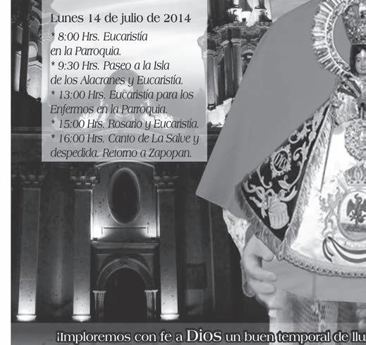 En su calidad de “Reina del Lago”, la Virgen de Zapopan, Patrona de la Arquidiócesis, será invocada y aclamada allá el domingo 13. Consulte el Programa.