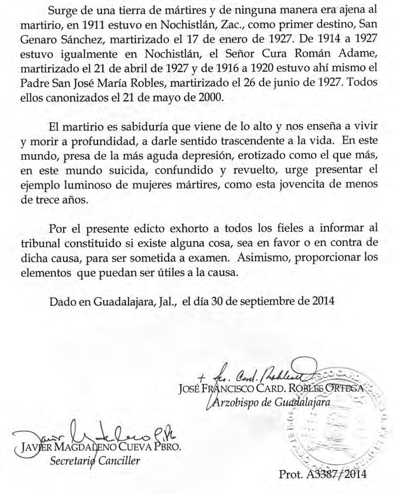 Semanario Arquidiocesano de Guadalajara • Órgano de Formación e Información Católica • Semanario Arquidiocesano de Guadalajara, fundado por el Sr. Cardenal Dn. Juan Sandoval Íñiguez, el 24 de enero de 1997 • Registrado ante la Comisión Calificadora de Publicaciones y Revistas Ilustradas —CCPRI— en Certificados de Licitud de Título y Contenido números 10296 y 7226 expediente 1/432“97”/13565 el 20 de enero de 1998 y en el Instituto Nacional de Derecho de Autor, bajo reserva al uso exclusivo del título 04-2011-070709061600-101 el 7 de julio de 2011 • Registro Postal Publicación Periódica PP14-0002-2000, autorización por SEPOMEX • No se devuelven originales. Los escritos firmados son responsabilidad del autor, no de la publicación ni del titular • Es una publicación editada por Creator Comunicación, S. de R.L. de C.V., con oficinas y redacción en Isla Flores N. 3344-2, Col. Jardines de San José, Guadalajara, Jal., México, C.P. 44950 A.P. 3-31.