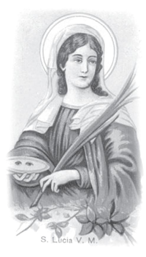allí a pedir su curación a la mártir. La gracia fue doble: curación material de la enfermedad de su madre y curación espiritual de la ceguera que tenía Eutiquia sobre el matrimonio de su hija Lucía. Dijo la madre: “Perdóname, hija querida, veo ahora lo engañada que estaba con tu falso porvenir. Daremos todo cuanto tenemos y nos entregaremos al servicio del Señor”.