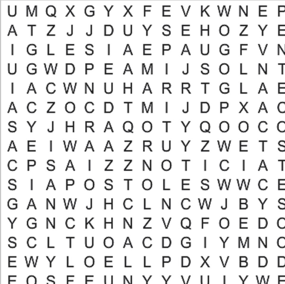 Amiguito, encuentra las palabras relacionadas con el día de Pentecostés en el recuadro siguiente: