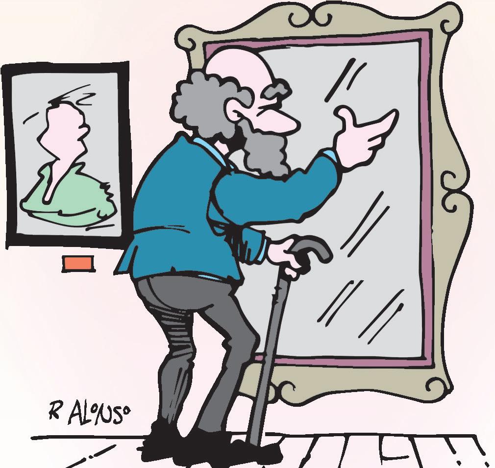 El anciano siguió su crítica sin parar, hasta que su esposa logró llegar hasta él entre la multitud, y lo apartó discretamente para decirle en voz baja: -Querido, estás mirando un espejo.