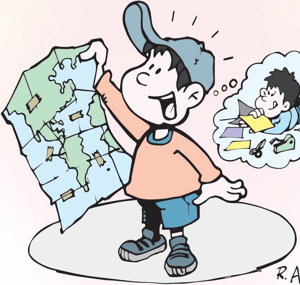 Con unas tijeras recortó el mapa en varios pedazos y junto con un rollo de cinta, se lo entregó a su hijo diciendo: