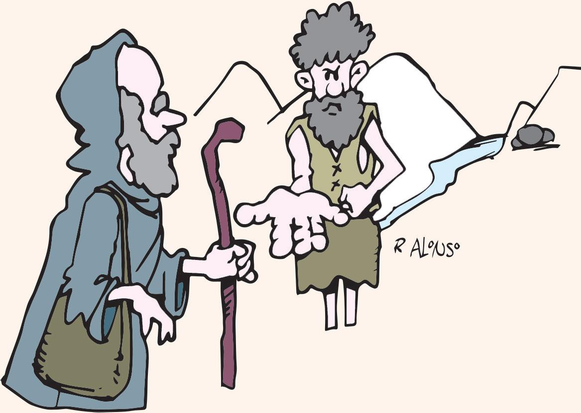 – “La otra noche se me apareció en sueños el Señor”, – dijo el aldeano– , “y me aseguró que si venía al anochecer a las afueras de la aldea, encontraría a un santo que me daría una piedra preciosa que me haría rico para siempre”.