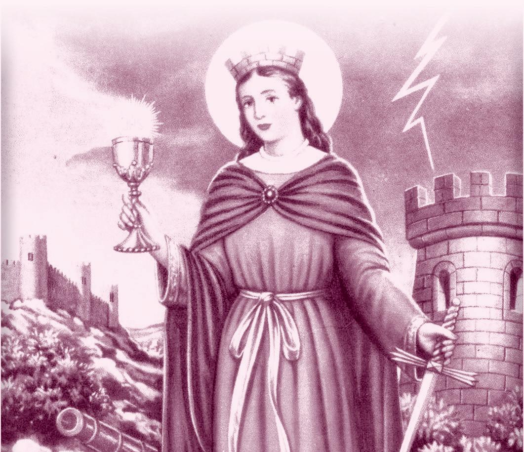 sieron matarla en seguida. La llevaron ante el tribunal del juez Marciano, le dieron toda clase de tormentos y el padre, enfadado con su hija, tuvo la mala intención de rematarla con un golpe de gracias y mientras la cabeza de su hija rodaba por el polvo, él murió fulminado por un rayo. Santa Bárbara es patrona del fuego, las explosiones, de artilleros y artificieros, protectora del rayo. Siempre es asociada al símbolo de la torre, donde su padre la encerró para que renunciara a Dios.