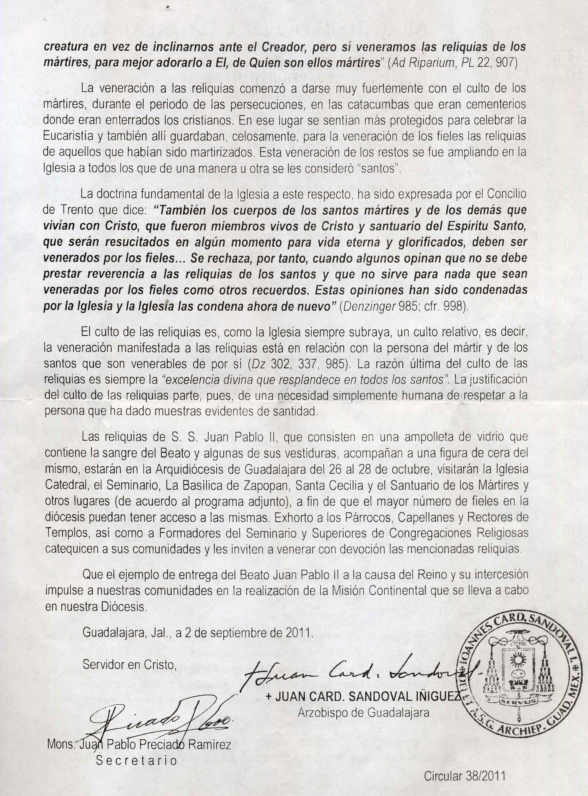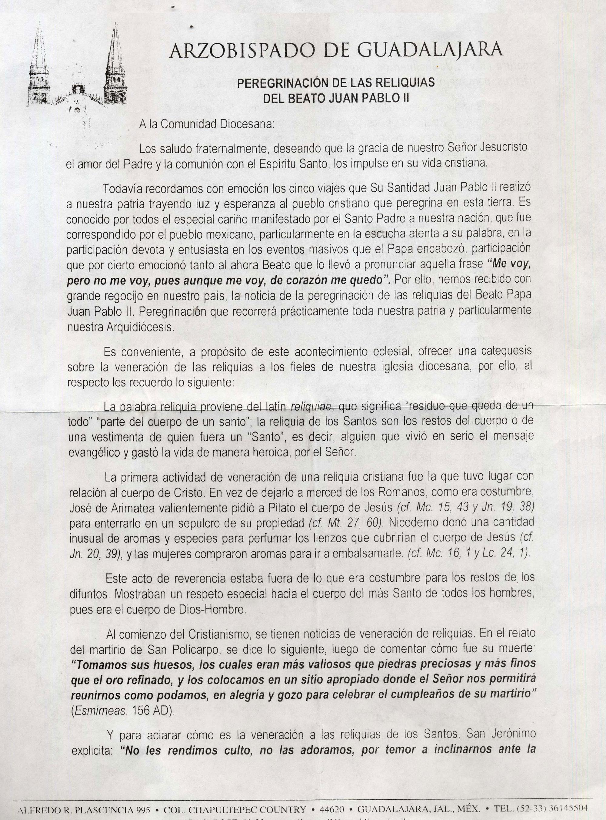Visita de las Reliquias del Beato Juan Pablo II