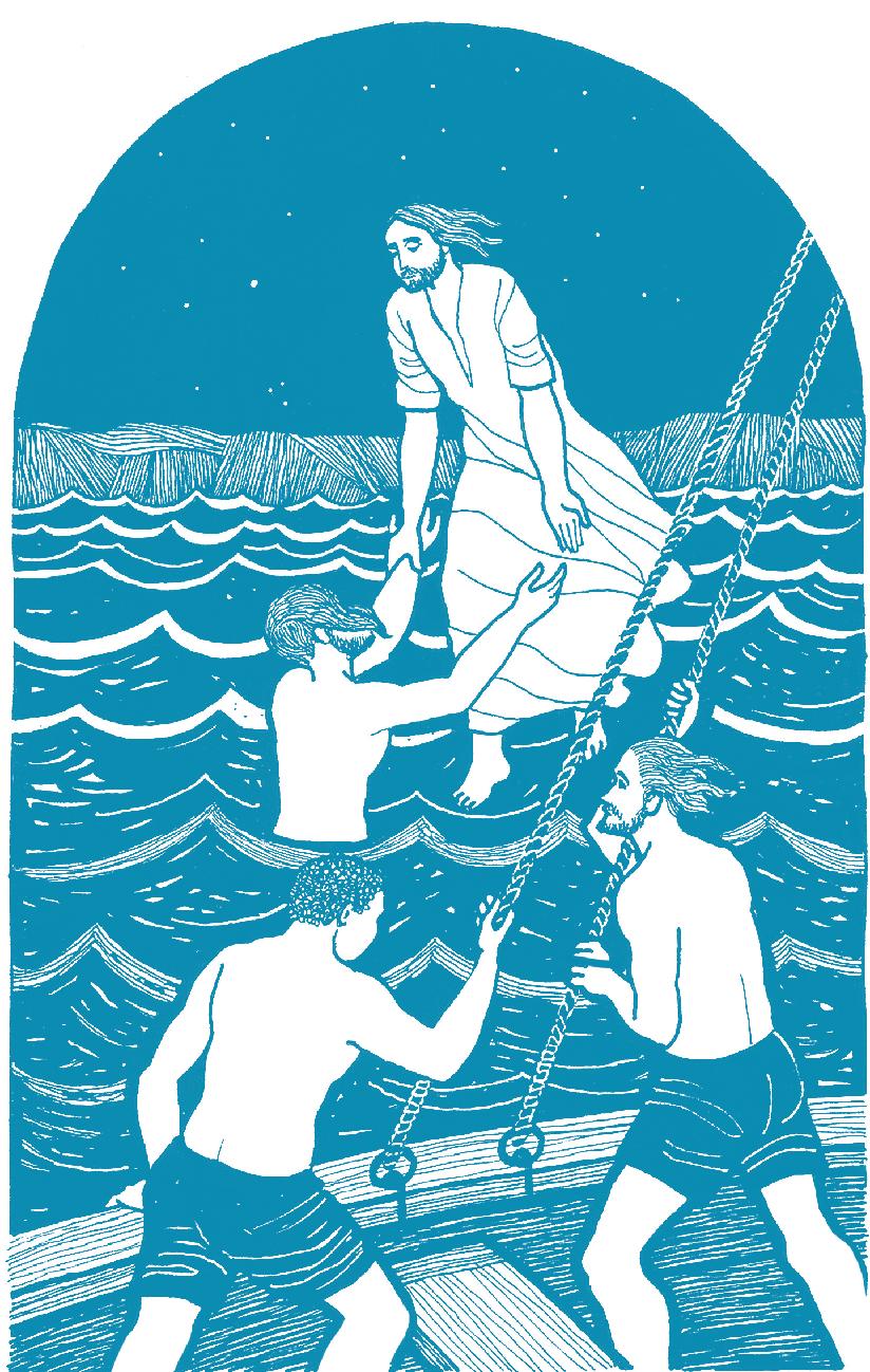 le tendió la mano, lo sostuvo y le dijo: "hombre de poca fe, ¿por qué dudaste?". En cuanto subieron a la barca, el viento se calmó. Los que estaban en la barca se postraron ante Jesús, diciendo: "Verdaderamente Tú eres el Hijo de Dios". Palabra del Señor.