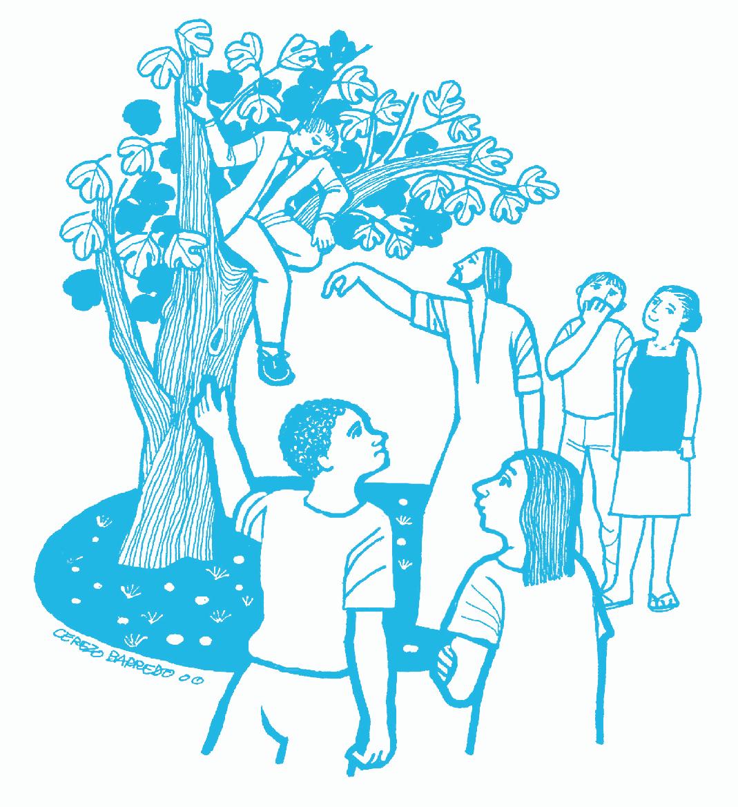 En aquel tiempo, Jesús entró en Jericó, y al ir atravesando la ciudad, sucedió que un hombre llamado Zaqueo, jefe de publicanos y rico, trataba de conocer a Jesús; pero la gente se lo impedía, porque Zaqueo era de baja estatura. Entonces corrió y se subió a un árbol para verlo cuando pasara por ahí. Al llegar a ese lugar, Jesús levantó los ojos y le dijo: “Zaqueo, bájate pronto, porque hoy tengo que hospedarme en tu casa”. El bajó enseguida y lo recibió muy contento. Al ver esto, comenzaron todos a murmurar diciendo: “Ha entrado a hospedarse en casa de un pecador”.