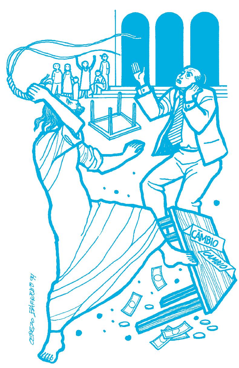 Jesús quiere mostrarnos lo que no debe ser la religión. Al echar a todos fuera del templo con sus ovejas y sus bueyes, declara la invalidez de la religión de los que creen y utilizan la fe como un parche para de vez en cuando. Jesús declara maligna esa forma de religiosidad que puede ser en sí misma una injusticia.