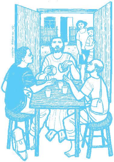Es cierto, se oyen rumores de que ya no está en la tumba, pero no saben qué habrá pasado. Dos personajes del pequeño poblado de Emaús hacen su camino de regreso. En medio de la plática tristona que los lleva cabizbajos, alguien se les acerca y comparte la plática. El compañero de viaje tiene otros pensamientos de lo que ha pasado y trata de animar a los que se sienten derrotados. Así es casi siempre la vida: confiamos y de repente se nos caen las alas de las ilusiones. Pero algo va a pasar después de ese encuentro en las veredas polvosas de Israel. Todo se va a explicar en Emaús cuando ese incógnito compañero de plática es invitado y parte el pan. Hasta entonces, ¡se les abrieron los ojos!