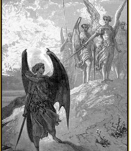 El exorcista asegura que Dios sometió a los ángeles a una prueba de carácter espiritual. Según el autor, Dios se manifestó a ellos como una visión; sabían que allí estaba, lo escuchaban, pero no lo veían en su plenitud, no se manifestó a ellos para que durante el tiempo (o evo, como lo llama Santo Tomás de Aquino), se pudieran perfeccionar en las virtudes y así gozar de su visión beatífica plenamente.