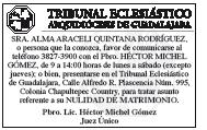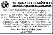 Semanario Arquidiocesano de Guadalajara Órgano de Formación e Información Católica Semanario Arquidiocesano de Guadalajara, fundado por el Sr. Cardenal Dn. Juan Sandoval Íñiguez, el 24 de enero de 1997 Registrado ante la Comisión Calificadora de Publicaciones y Revistas Ilustradas —CCPRI— en Certificados de Licitud de Título y Contenido números 10296 y 7226 expediente 1/432“97”/13565 el 20 de enero de 1998 y en el Instituto Nacional de Derecho de Autor, bajo reserva al uso exclusivo del título 04-2011-070709061600-101 el 7 de julio de 2011 Registro Postal Publicación Periódica PP14-0002-2000, autorización por SEPOMEX No se devuelven originales. Los escritos firmados son responsabilidad del autor, no de la publicación ni del titular Es una publicación editada por Creator Comunicacion, S de RL de CV., con oficinas y redacción en Isla Flores No. 3344-2, Col. Jardines de San José, Guadalajara, Jal., México, C.P. 44950 A.P. 3-31. Teléfono: 3002-6470. Suscripciones ext. 1953 | Publicidad ext. 1925 | Redacción ext. 1922 Horario de oficina: 8:30 am. a 5:30 pm., correo electrónico: semanario@cccomunicaciones.com.mx Página Internet: http://www.semanario.com.mx • Distribución: Mensajería Tercer Milenio, Jarauta No. 510-A, Tels. 3618-9670, planta alta. Guadalajara, Jal. C.P. 44360