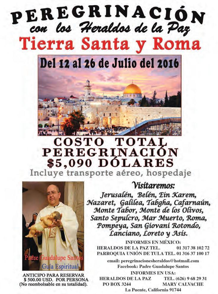 larnos su paz, pero no como el mundo la concibe, pensando que es la ausencia de guerras o de conflictos, sino como esa pre-