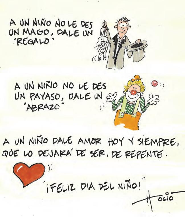 Festejar el Día del Niño, el Día de la Madre, del Padre... puede ser un calendario para tranquilizar conciencias de cientos y miles; oportunidad para el lucimiento de personajes de puestos públicos, acostumbrados a entretener con discursos y aparecer en las fotos. Hay Organizaciones y Gobiernos que endulzan con caramelos y piñatas, juguetes y serpentinas, esta celebración tradicional. ¡Nada más!