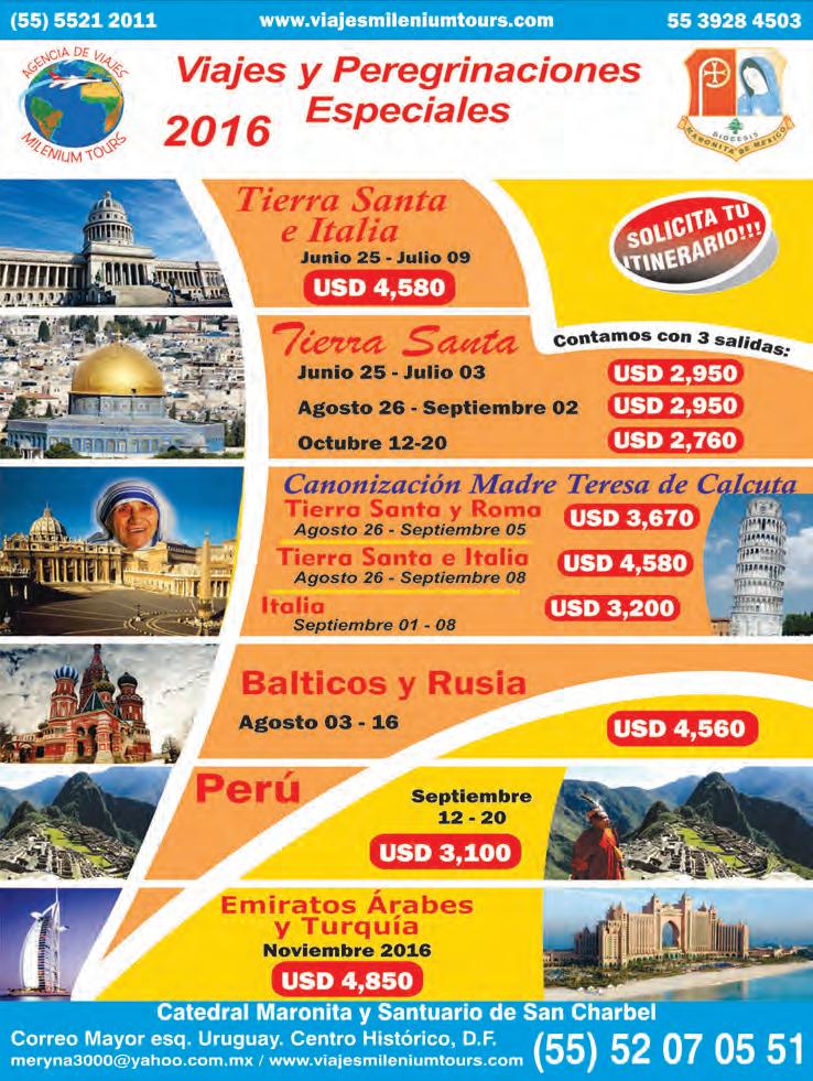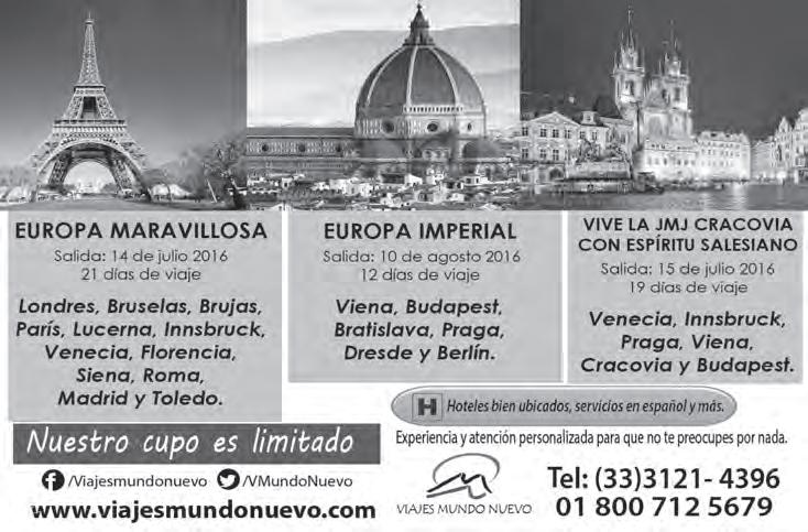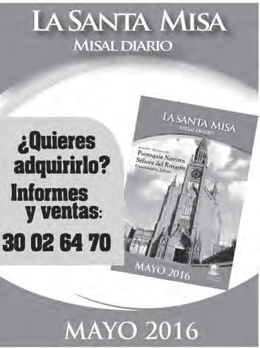 -Los Padres de Miles Christi, conservando la fidelidad al método ignaciano, ofrecen pláticas para mantener el alma saludable. En este Año de la Misericordia, habrá Ejercicios Espirituales para mujeres, del 20 al 22, en la Casa de las Religiosas de “Lestonnac”, en Ciudad Granja (Zapopan). Informes e inscripciones, al 3125-6581. Correo: ejerciciosgdl@mileschristi.org