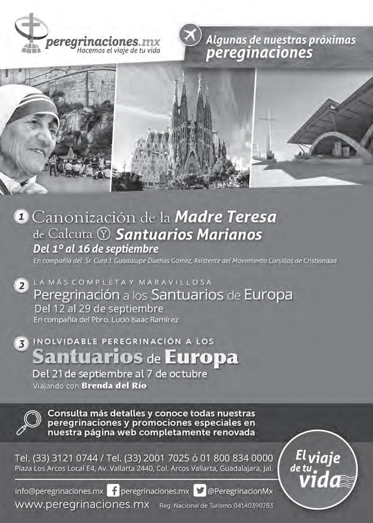 Semanario Arquidiocesano de Guadalajara • Órgano de Formación e Información Católica • Semanario Arquidiocesano de Guadalajara, fundado por el Sr. Cardenal Dn. Juan Sandoval Íñiguez, el 24 de enero de 1997 • Registrado ante la Comisión Calificadora de Publicaciones y Revistas Ilustradas —CCPRI— en Certificados de Licitud de Título y Contenido números 10296 y 7226 expediente 1/432“97”/13565 el 20 de enero de 1998 y en el Instituto Nacional de Derecho de Autor, bajo reserva al uso exclusivo del título 04-2011-070709061600-101 el 7 de julio de 2011 • Registro Postal Publicación Periódica PP14-0002-2000, autorización por SEPOMEX • No se devuelven originales. Los escritos firmados son responsabilidad del autor, no de la publicación ni del titular • Es una publicación editada por Creator Comunicación, S. de R.L. de C.V., con oficinas y redacción en Isla Flores N. 3344-2, Col. Jardines de San José, Guadalajara, Jal., México, C.P. 44950 A.P. 3-31.