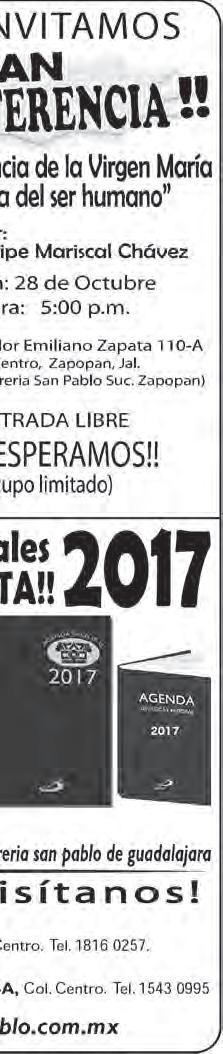 -“Grupo Juan Pablo II, sin fronteras”, de la Parroquia de Nuestra Señora del Sagrario, convoca a matrimonios, divorciados, viudos y padres solteros a un Encuentro del 28 al 30 de octubre. Informes, con Adrián al 044-33-3662-3365 y en la Notaría, al 3613-2529. Costo, 400.00 p/p.