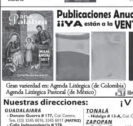 Semanario Arquidiocesano de Guadalajara • Órgano de Formación e Información Católica • Semanario Arquidiocesano de Guadalajara, fundado por el Sr. Cardenal Dn. Juan Sandoval Íñiguez, el 24 de enero de 1997 • Registrado ante la Comisión Calificadora de Publicaciones y Revistas Ilustradas —CCPRI— en Certificados de Licitud de Título y Contenido números 10296 y 7226 expediente 1/432“97”/13565 el 20 de enero de 1998 y en el Instituto Nacional de Derecho de Autor, bajo reserva al uso exclusivo del título 04-2011-070709061600-101 el 7 de julio de 2011 • Registro Postal Publicación Periódica PP14-0002-2000, autorización por SEPOMEX • No se devuelven originales. Los escritos firmados son responsabilidad del autor, no de la publicación ni del titular • Es una publicación editada por Creator Comunicación, S. de R.L. de C.V., con oficinas y redacción en Isla Flores N. 3344-2, Col. Jardines de San José, Guadalajara, Jal., México, C.P. 44950 A.P. 3-31. Los anuncios que se muestran en Semanario son responsabilidad, única y exclusivamente, del solicitante. No nos hacemos responsables de los servicios que se publicitan.
