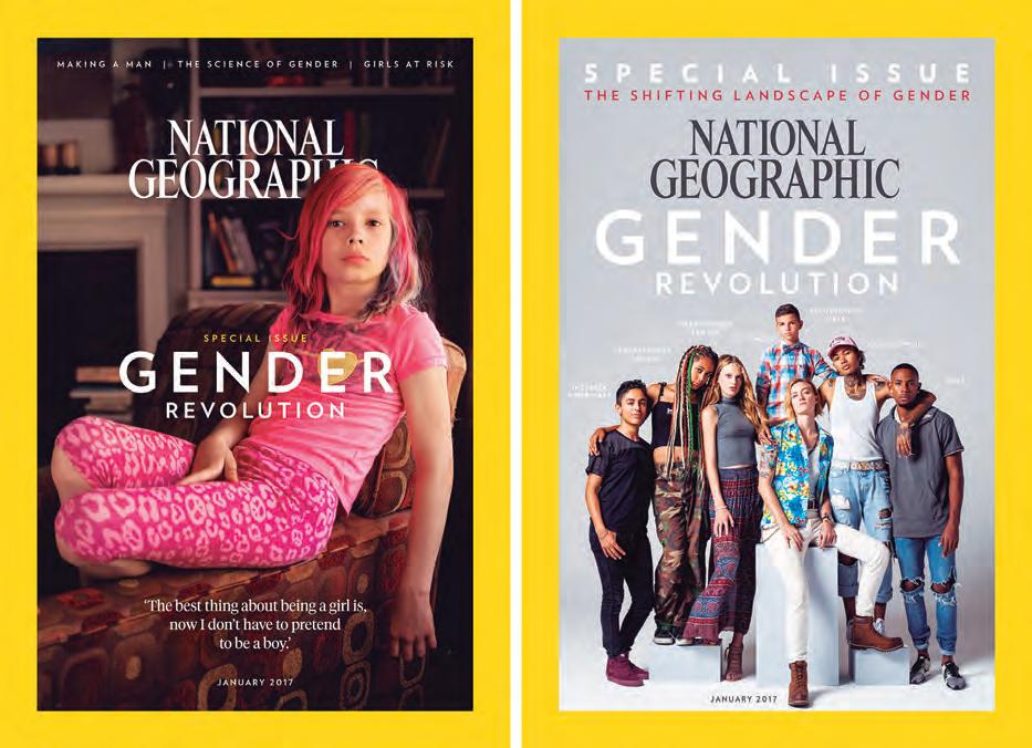 La portada de National Geographic que se publicará este mes de enero es un monográ co sobre la “Revolución de género” y la da entera a la fotografía de Avery Jackson, un niño de 9 años que dice ser una niña, mientras que la portada alternativa de la revista es la de un grupo de jóvenes, etiquetado según su “identidad de género”.