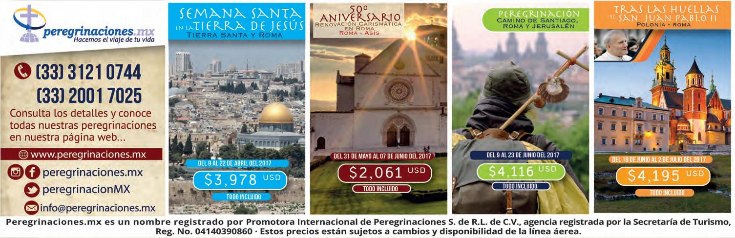 Impreso por: Ediciones Católicas de Guadalajara, S.A. de C.V. con oficinas en Isla Flores N. 3344, Col. San José, Tlaquepaque, Jalisco. Tel. 3002-6470. Tiraje: 37,000 a 40,000 Consejo Editorial: