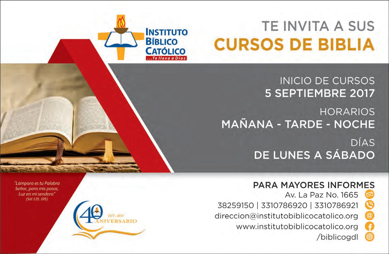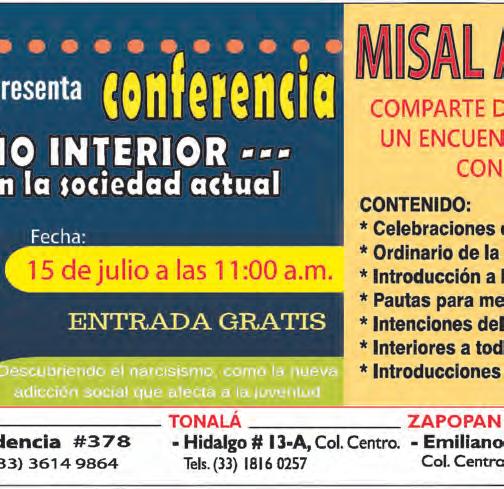 Impreso por: Ediciones Católicas de Guadalajara, S.A. de C.V. con oficinas en Isla Flores N. 3344, Col. San José, Tlaquepaque, Jalisco. Tel. 3002-6470. Tiraje: 20,000 a 25,000 Consejo Editorial: