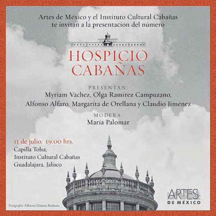 El martes 11 de julio del año en curso 2017, a las 7 de la noche, en la llamada ‘Capilla Tolsá’, del Instituto Cultural Cabañas, confín oriental de la Plaza Tapatía, todos los que gusten participar, pues la entrada es libre, podrán asistir a la presentación del número 124 de la prestigiosa revista-libro Artes de México, dedicado en su edición trimestral de marzo al más emblemático edi cio de la capital de Jalisco