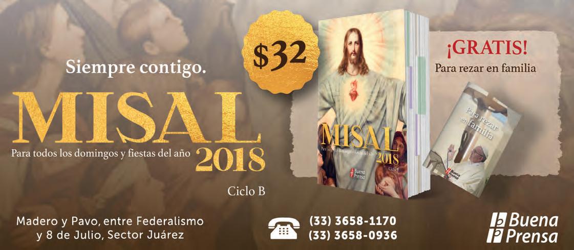 Impreso por: Ediciones Católicas de Guadalajara, S.A. de C.V. con oficinas en Isla Flores N. 3344, Col. San José, Tlaquepaque, Jalisco. Tel. 3002-6470. Tiraje: 20,000 a 25,000 Consejo Editorial: