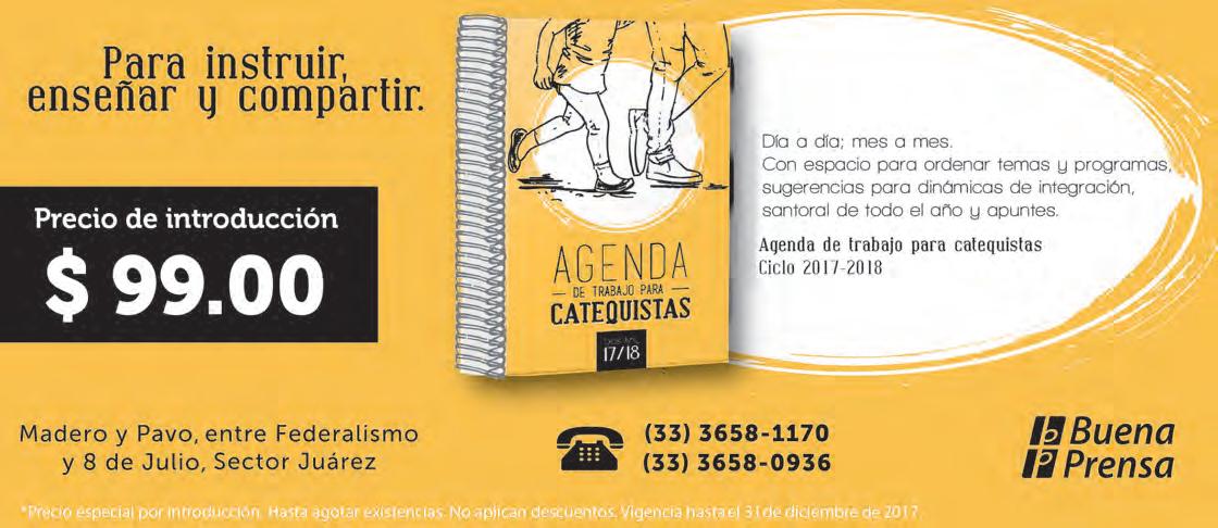 Teléfono: 3002-6470. Suscripciones: Ext. 1954 Publicidad: Ext. 1925 | Redacción: Ext. 1922 Horario de oficina: 8:30 a.m. a 5:30 p.m., correo electrónico: semanario@cccomunicaciones.com.mx Página Internet: http://www.semanario.com.mx Distribución: Mensajería Tercer Milenio, Jarauta N. 510-A, Tel. 3618-9670, planta alta. Guadalajara, Jal. C.P. 44360. Impreso por: Ediciones Católicas de Guadalajara, S.A. de C.V. con oficinas en Isla Flores N. 3344, Col. San José, Tlaquepaque, Jalisco. Tel. 3002-6470. Tiraje: 20,000 a 25,000