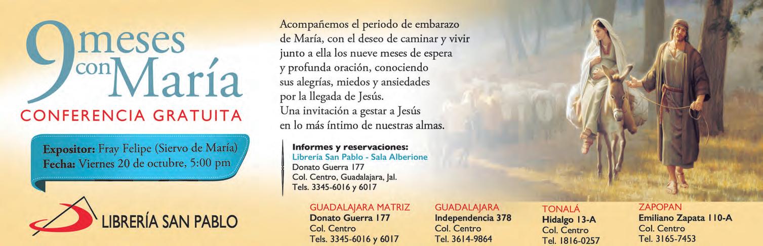 • Órgano de Formación e Información Católica • Semanario Arquidiocesano de Guadalajara, fundado por el Sr. Cardenal Dn. Juan Sandoval Íñiguez, el 24 de enero de 1997 Registrado ante la Comisión Calificadora de Publicaciones y Revistas Ilustradas —CCPRI— en Certificados de Licitud de Título y Contenido números 10296 y 7226 expediente 1/432“97”/13565 el 20 de enero de 1998 y en el Instituto Nacional de Derecho de Autor, bajo reserva al uso exclusivo del título 04-2011-070709061600-101 el 7 de julio de 2011 Registro Postal Publicación Periódica PP14-0002-2000, autorización por SEPOMEX No se devuelven originales. Los escritos firmados son responsabilidad del autor, no de la publicación ni del titular Es una publicación editada por Creator Comunicación, S. de R.L. de C.V., con oficinas y redacción en Isla Flores N. 3344-2, Col. Jardines de San José, Guadalajara, Jal., México, C.P. 44950 A.P. 3-31. Los anuncios que se muestran en Semanario son responsabilidad, única y exclusivamente, del solicitante. No nos hacemos responsables de los servicios que se publicitan.