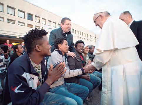 En él, el Papa presenta a la Iglesia como un hospital de campaña; repasa la condición de médico usada por Jesucristo, como parte sustancial de su ministerio para, después, a rmar tajante, que sus discípulos recibimos de Él la tarea de acercarnos, con e cacia y misericordia, a las personas enfermas del cuerpo y del espíritu, lo cual implica cuidar unos de otros, brindando una atención médica de calidad, que ponga a la persona en el centro del proceso terapéutico y, paralelo a ello, realizar la investigación cientí ca en el respeto de la vida, ofreciendo a la