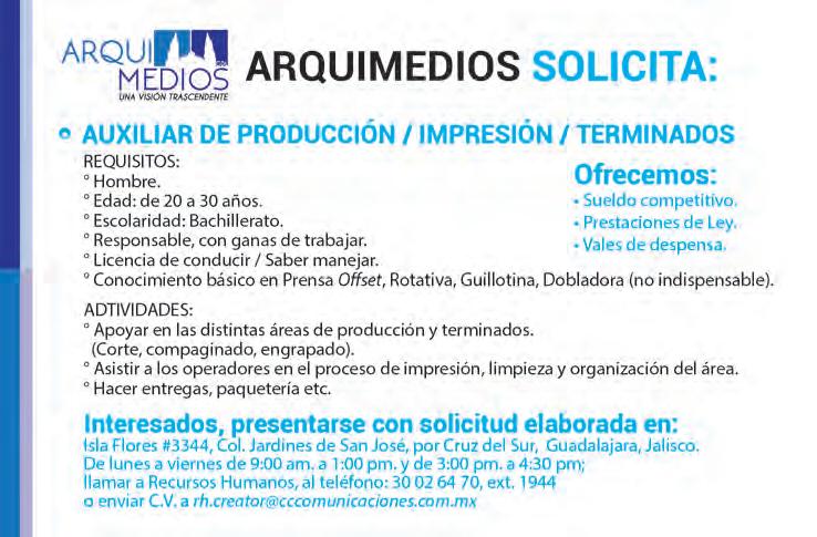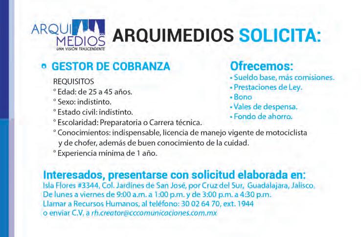publicidad: Rosalva Banda Pérez Patricia Rodríguez Barrera David Nicolás Collins Fernández Nancy Olivares Lomelí publicidad@cccomunicaciones.com.mx