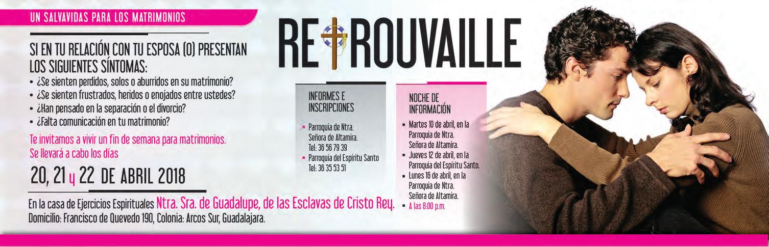 • Órgano de Formación e Información Católica • Semanario Arquidiocesano de Guadalajara, fundado por el Sr. Cardenal Dn. Juan Sandoval Íñiguez, el 24 de enero de 1997 Registrado ante la Comisión Calificadora de Publicaciones y Revistas Ilustradas —CCPRI— en Certificados de Licitud de Título y Contenido números 10296 y 7226 expediente 1/432“97”/13565 el 20 de enero de 1998 y en el Instituto Nacional de Derecho de Autor, bajo reserva al uso exclusivo del título 04-2018-021211450400-101 el 12 de febrero de 2018 Registro Postal Publicación Periódica PP14-0002-2000, autorización por SEPOMEX No se devuelven originales. Los escritos firmados son responsabilidad del autor, no de la publicación ni del titular Es una publicación editada por Creator Comunicación, S. de R.L. de C.V., con oficinas y redacción en Isla Flores N. 3344-2, Col. Jardines de San José, Guadalajara, Jal., México, C.P. 44950 A.P. 3-31. Los anuncios que se muestran en Semanario son responsabilidad, única y exclusivamente, del solicitante. No nos hacemos responsables de los servicios que se publicitan.