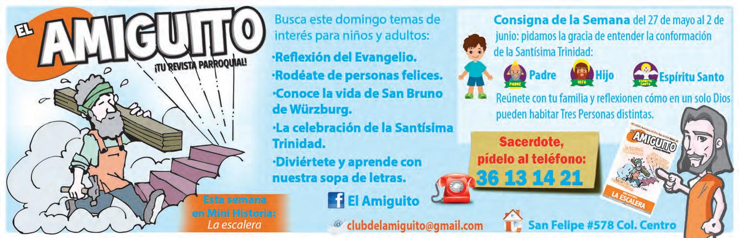 mayor Misterio de nuestra fe: “Me ha sido dado todo poder en el cielo y en la tierra. Vayan, pues, y enseñen a todas las naciones, bautizándolas en el nombre del Padre y del Hijo y del Espíritu Santo” (v. 19). Sorprende que ante la duda de algunos, el Cristo glorioso responda con la entrañable con anza del envío: la fe se fortalece al ser compartida. En un libro de verdad interesante escrito por Alphonse y Rachel Goettmann, quienes a través de su experiencia matrimonial, se adentran en el misterio de la Santísima Trinidad que celebramos hoy, al que se re eren como: “La fuente del amor. La palabra ‘Trinidad’ –Tri-unidad, forjada por la antigua tradición de los Padres– resume en verdad lo esencial del misterio: los tres en uno, la unidad en la diversidad. Cada persona de la Trinidad es absolutamente única, pero al mismo tiempo totalmente unida a las otras dos. Es una unión común, donde cada persona recibe por completo el don de las otras dos. El Padre sólo es Padre si se entrega por completo al Hijo y al Espíritu Santo, y de manera recíproca” (La mística del matrimonio, Buena Prensa, México D. F. 2012, pág. 38).