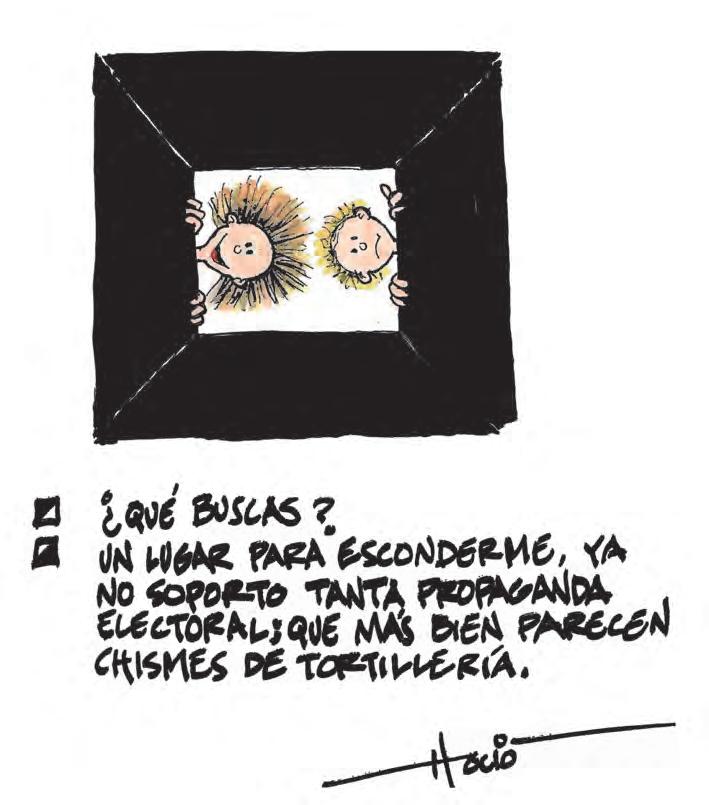 Ninguno de los candidatos tiene una auténtica estrategia para frenar la violencia, ninguno ha sido capaz de cuestionar la narrativa del narco invencionada por Calderón, ninguno tiene como prioridad la creación de un sistema de justicia independiente, con able y e caz que nos permita apreciar las reales condiciones de violencia en nuestro país, por la guerra contra el narco que empezamos a perder hace 12 años, en la cual los ciudadanos somos solo una estadística de daños colaterales, como el bebé Tadeo.