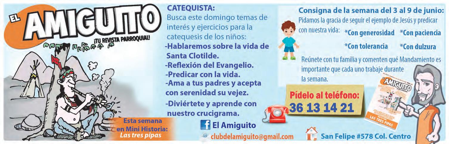 • Órgano de Formación e Información Católica • Semanario Arquidiocesano de Guadalajara, fundado por el Sr. Cardenal Dn. Juan Sandoval Íñiguez, el 24 de enero de 1997 Registrado ante la Comisión Calificadora de Publicaciones y Revistas Ilustradas —CCPRI— en Certificados de Licitud de Título y Contenido números 10296 y 7226 expediente 1/432“97”/13565 el 20 de enero de 1998 y en el Instituto Nacional de Derecho de Autor, bajo reserva al uso exclusivo del título 04-2018-021211450400-101 el 12 de febrero de 2018 Registro Postal Publicación Periódica PP14-0002-2000, autorización por SEPOMEX No se devuelven originales. Los escritos firmados son responsabilidad del autor, no de la publicación ni del titular Es una publicación editada por Creator Comunicación, S. de R.L. de C.V., con oficinas y redacción en Isla Flores N. 3344-2, Col. Jardines de San José, Guadalajara, Jal., México, C.P. 44950 A.P. 3-31. Los anuncios que se muestran en Semanario son responsabilidad, única y exclusivamente, del solicitante. No nos hacemos responsables de los servicios que se publicitan.