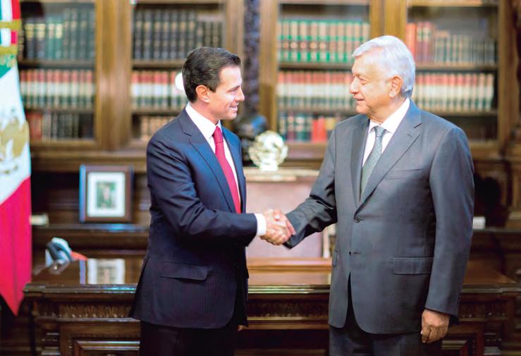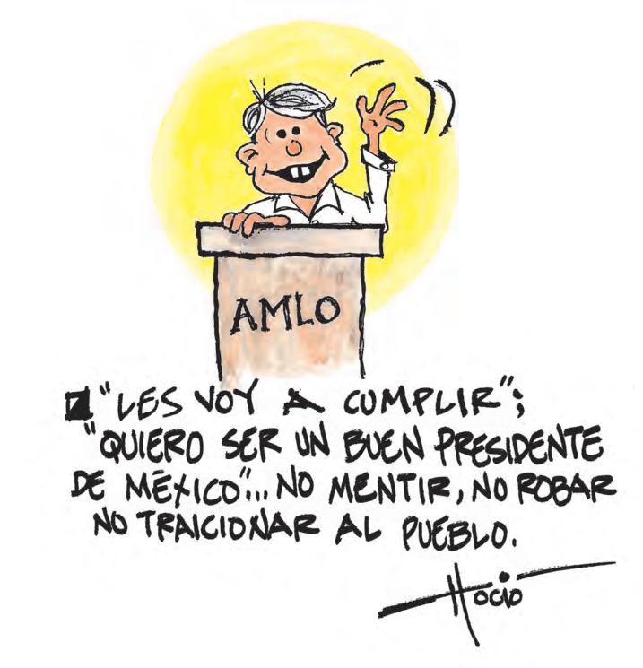Pesa sobre Andrés Manuel el fantasma de Fox, igualmente triunfador hace dieciocho años, con un inusual apoyo mayoritario en las cámaras, con un discurso crítico y hasta populista, decidido a resolver aún los problemas más serios en cosa de veinte minutos, blandiendo símbolos religiosos en el Auditorio Nacional, y con un único triunfo al principio y al nal de su sexenio: Haber sacado al PRI de Los Pinos.
