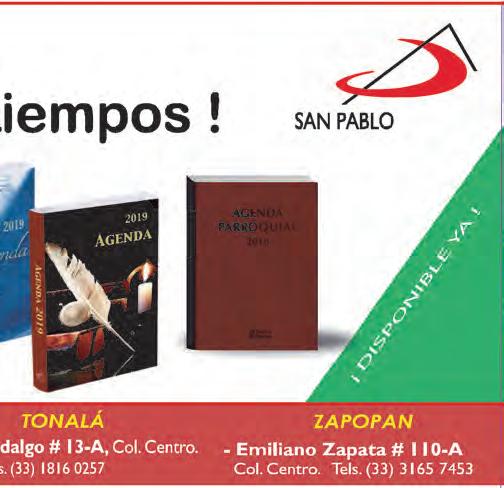 Semanario Arquidiocesano de Guadalajara • Órgano de Formación e Información Católica • Semanario Arquidiocesano de Guadalajara, fundado por el Sr. Cardenal Dn. Juan Sandoval Íñiguez, el 24 de enero de 1997 Registrado ante la Comisión Calificadora de Publicaciones y Revistas Ilustradas —CCPRI— en Certificados de Licitud de Título y Contenido números 10296 y 7226 expediente 1/432“97”/13565 el 20 de enero de 1998 y en el Instituto Nacional de Derecho de Autor, bajo reserva al uso exclusivo del título 04-2018-021211450400-101 el 12 de febrero de 2018 Registro Postal Publicación Periódica PP14-0002-2000, autorización por SEPOMEX No se devuelven originales. Los escritos firmados son responsabilidad del autor, no de la publicación ni del titular Es una publicación editada por Creator Comunicación, S. de R.L. de C.V., con oficinas y redacción en Isla Flores N. 3344-2, Col. Jardines de San José, Guadalajara, Jal., México, C.P. 44950 A.P. 3-31. Los anuncios que se muestran en Semanario son responsabilidad, única y exclusivamente, del solicitante. No nos hacemos responsables de los servicios que se publicitan.