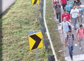 Los migrantes que han cruzado sin documentos que acrediten su legal estancia en territorio mexicano, avanzan arriesgando la vida entre automóviles y soportando las altas temperaturas -que oscilan entre 40 grados centígrados- y la intensa humedad.