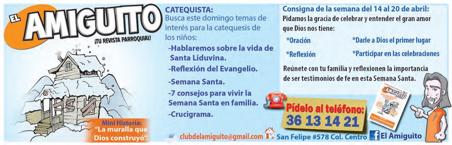 ● Talleres de Oración y Vida del Padre Ignacio Larrañaga invitan al “Encuentro de experiencia de Dios”. Vive una experiencia única que te llenará de paz, nunca imaginada, en silencio e intimidad con “Aquél que sabemos nos ama”. Semana de Pascua del 21 al 26 de Abril. Informes 33 1395 9639 o 33 2635 9586.