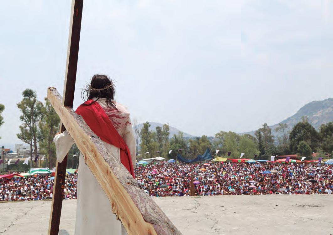 Impresiona imaginar cómo sería ese abrazo que Jesús dio a la cruz cuando los soldados se la entregaron para que la cargara. Probablemente en él se mezclaron dos sentimientos. Por un lado, sentir miedo por el doloroso nal de su vida. Pero, por el otro, una gran consolación al trascender el sufrimiento y ver en él el medio para amar hasta el nal, para cumplir el plan de salvación del Padre. Por eso, la Semana Santa la consideramos como un tiempo importante en nuestra vida cristiana. Es importante celebrar estos días participativamente, con creatividad y emoción, y sobre todo, encarnadas en la vida de nuestra sociedad actual, de nuestro pueblo. Pero el riesgo está en que hagamos solo un rito de los días santos, al margen del contexto en que Jesús vivió esto que ahora celebramos.