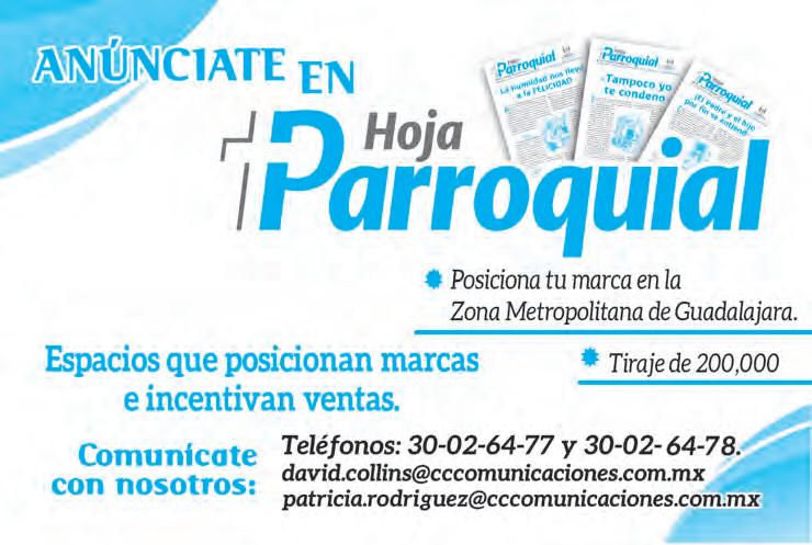 Teléfono: 3002-6470. Suscripciones: Ext. 1954 | Publicidad: Ext. 1906+1925 | Redacción: Ext. 1922 Horario de oficina: 8:30 a.m. a 5:30 p.m., correo electrónico: semanario@cccomunicaciones.com.mx Página Internet: http://www.semanario.com.mx Distribución: Mensajería Tercer Milenio, Jarauta N. 510-A, Tel. 3618-9670, planta alta. Guadalajara, Jal. C.P. 44360. Impreso por: Ediciones Católicas de Guadalajara, S.A. de C.V. con oficinas en Isla Flores N. 3344, Col. San José, Tlaquepaque,