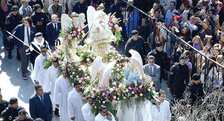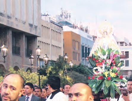 Hasta el año de 1734 el temporal fue siempre muy temido, de forma que la relación entre la comunidad y el clima era tensa. Traer la imagen de la Virgen de Zapopan modi có esta relación, y convirtió en tardes de esta y regocijo lo que antes eran tardes de tormenta y angustia. Seguía lloviendo, con la misma fuerza, pero la actitud había cambiado; ahora podría hasta pensarse que entre los bene cios que traían las aguas, estaba la venida de la Virgen que hacía olvidar los estragos anuales, promoviendo el que se enfrentaran con más éxito. Desde aquellos años la Virgen será la patrona de Aguas, y como el 13 de junio iniciaba la visita a los templos, la gente de Guadalajara dirá: “el 13 de junio comienzan las aguas, llueva o no llueva”. Desde luego, la celebración anual de este ciclo ritual enfrenta actualmente diversos retos, el primero ha sido la modi cación de su ruta tradicional que en principio se dijo sería temporal, por las obras de una Línea 3 del Tren Ligero que lleva ya seis años en construcción mezclados con largos periodos de suspensión. Esta ruta de momento interrumpida, fue creada especialmente para el desarrollo de la romería en 1952, con dinero de la ciudadanía, para ofrecer a este acontecimiento anual un espacio amplio y directo que comunicara a la ciudad con el santuario de Zapopan; pretender ahora sustituirla por una ruta sinuosa, estrecha y en algunos tramos encajonada, ha sido semejante a dejar el mejor camino por una vereda.