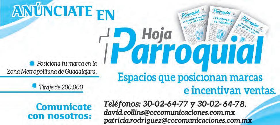 Teléfono: 3002-6470. Suscripciones: Ext. 1954 | Publicidad: Ext. 1906+1925 | Redacción: Ext. 1922 Horario de oficina: 8:30 a.m. a 5:30 p.m., correo electrónico: semanario@cccomunicaciones.com.mx Página Internet: http://www.semanario.com.mx Distribución: Mensajería Tercer Milenio, Jarauta N. 510-A, Tel. 3618-9670, planta alta. Guadalajara, Jal. C.P. 44360. Impreso por: Ediciones Católicas de Guadalajara, S.A. de C.V. con oficinas en Isla Flores N. 3344, Col. San José, Tlaquepaque,