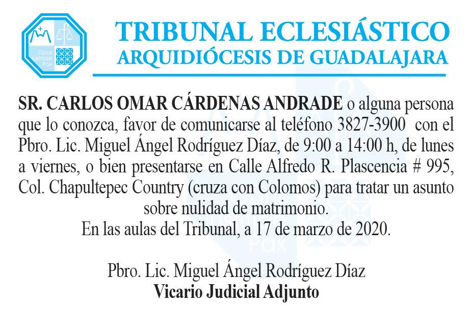 Semanario Arquidiocesano de Guadalajara Órgano de Formación e Información Católica Semanario Arquidiocesano de Guadalajara, fundado por el Sr. Cardenal Dn. Juan Sandoval Íñiguez, el 24 de enero de 1997 Registrado ante la Comisión Calificadora de Publicaciones y Revistas Ilustradas —CCPRI— en Certificados de Licitud de Título y Contenido números 10296 y 7226 expediente 1/432“97”/13565 el 20 de enero de 1998 y en el Instituto Nacional de Derecho de Autor, bajo reserva al uso exclusivo del título 04-2018-021211450400-101 el 12 de febrero de 2018 Registro Postal Publicación Periódica PP14-0002-2000, autorización por SEPOMEX No se devuelven originales. Los escritos firmados son responsabilidad del autor, no de la publicación ni del titular Es una publicación editada por Creator Comunicación, S. de R.L. de C.V., con oficinas y redacción en Isla Flores N. 3344-2, Col. Jardines de San José, Guadalajara, Jal., México, C.P. 44950 A.P. 3-31. Los anuncios que se muestran en Semanario son responsabilidad, única y exclusivamente, del solicitante. No nos hacemos responsables de los servicios que se publicitan.