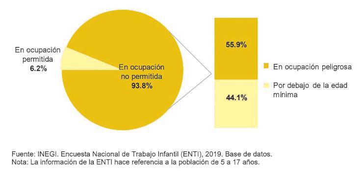 Se de ne como la participación de personas de 5 a 17 años, que durante un periodo de referencia determinado, participaron en el mercado laboral en sectores de actividad peligrosa. Empleados por debajo de la edad mínima