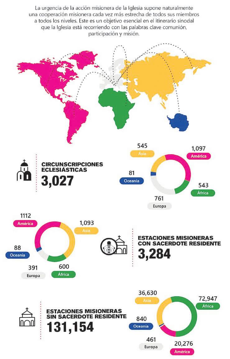 En la actualidad, son en total 619 mil 546 misioneros laicos católicos en el mundo, según señala una fuente consultada. A ellos, y más, el Papa Francisco quiso expresar su cercanía en Cristo “a todos los misioneros y las misioneras del mundo, en particular a aquellos que atraviesan un momento difícil. El Señor resucitado, está siempre con ustedes y ve su generosidad y sus sacri cios por la misión de evangelización en lugares lejanos.
