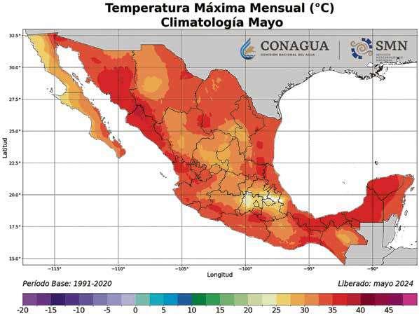 De acuerdo Servicio Meteorológico Nacional, con apoyo de la Comisión Nacional del Agua, la Secretaría de Medio Ambiente y Recursos Naturales, se pronostican temperaturas máximas supe-