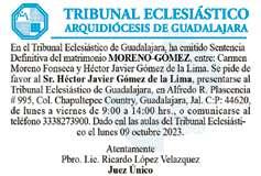 Semanario Arquidiocesano de Guadalajara Órgano de Formación e Información Católica Semanario Arquidiocesano de Guadalajara, fundado por el Sr. Cardenal Dn. Juan Sandoval Íñiguez, el 24 de enero de 1997 • Registrado ante la Comisión Calificadora de Publicaciones y Revistas Ilustradas —CCPRI— en Certificados de Licitud de Título y Contenido números 10296 y 7226 expediente 1/432“97”/13565 el 20 de enero de 1998 y en el Instituto Nacional de Derecho de Autor, bajo reserva al uso exclusivo del título 04-2018-021211450400-101 el 12 de febrero de 2018 • Registro Postal Publicación Periódica PP14-0002-2000, autorización por SEPOMEX No se devuelven originales. Los escritos firmados son responsabilidad del autor, no de la publicación ni del titular Es una publicación editada por Creator Comunicación, S. de R.L. de C.V., con oficinas y redacción en Isla Flores N. 3344-2, Col. Jardines de San José, Guadalajara, Jal., México, C.P. 44950 A.P. 3-31. Los anuncios que se muestran en Semanario son responsabilidad, única y exclusivamente, del solicitante. No nos hacemos responsables de los servicios que se publicitan.